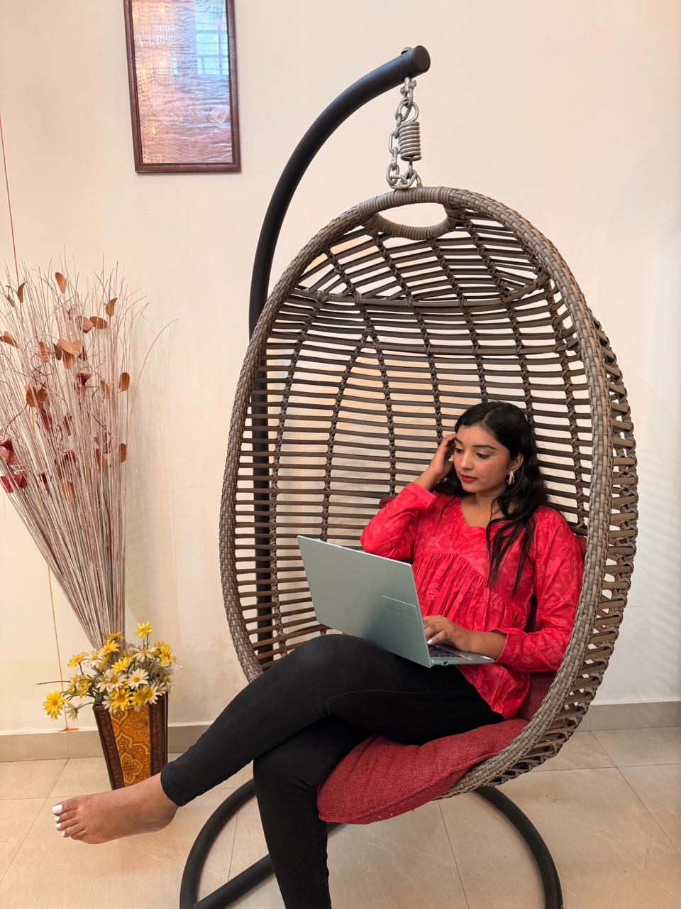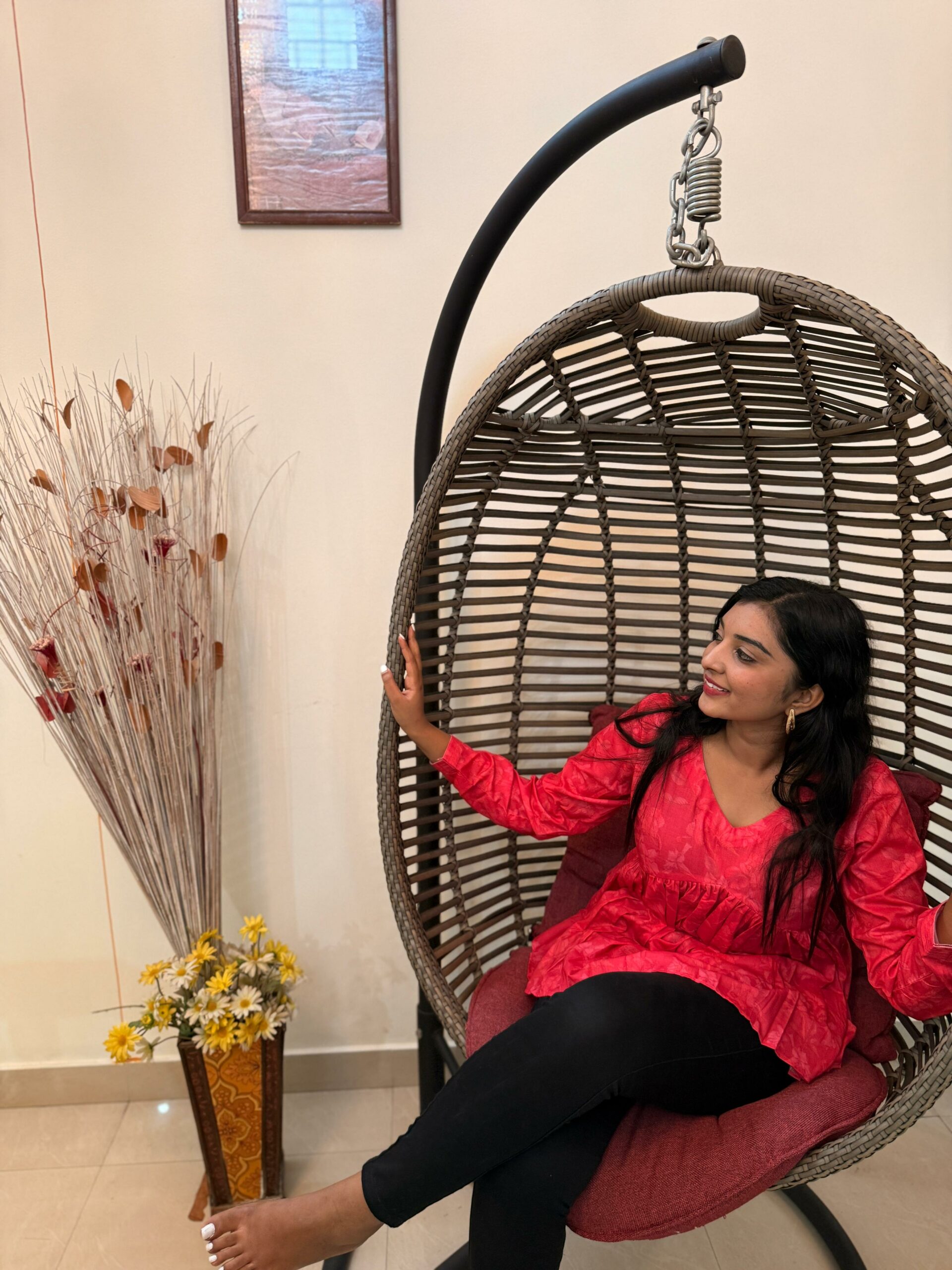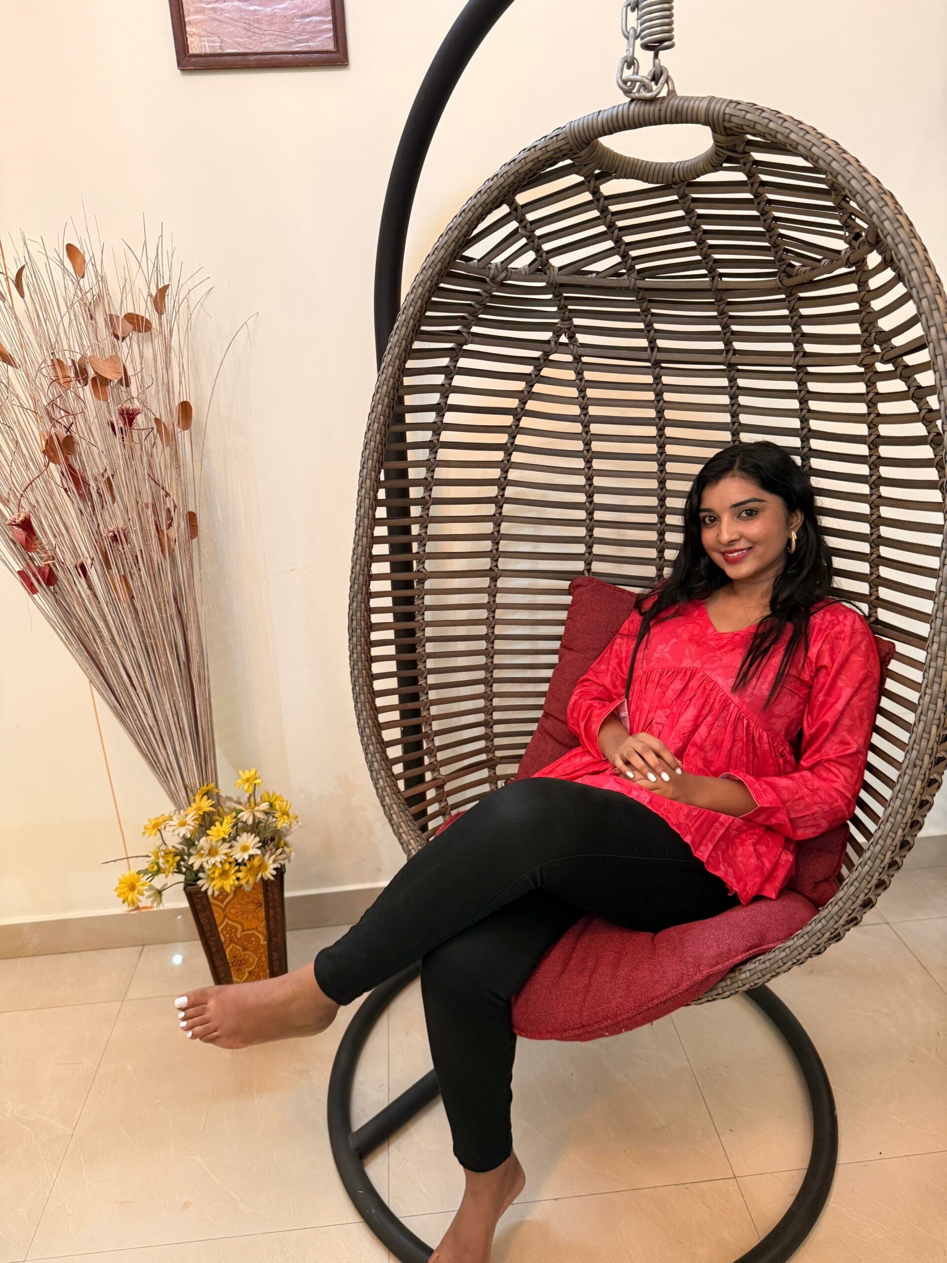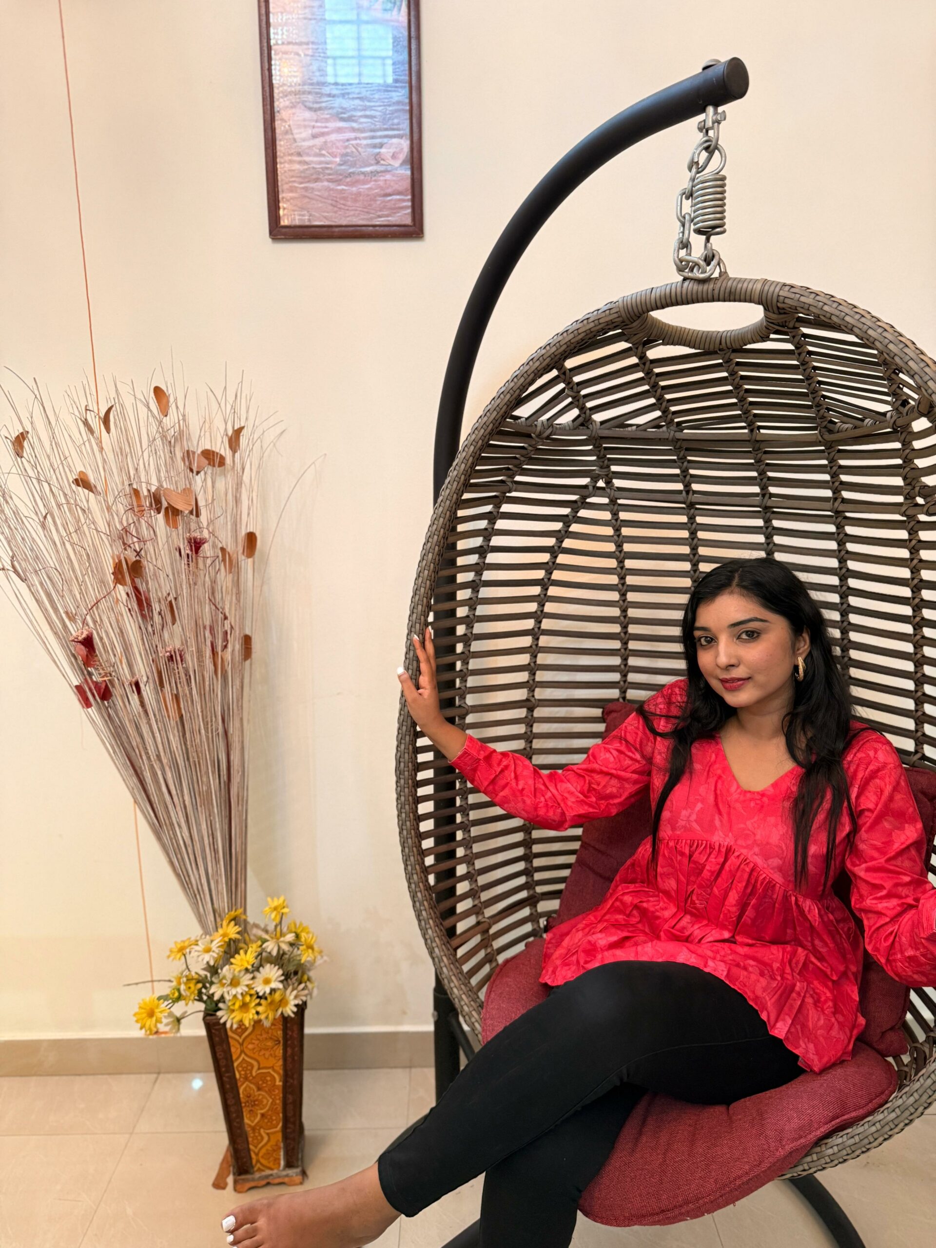 Flame red flared short kurti