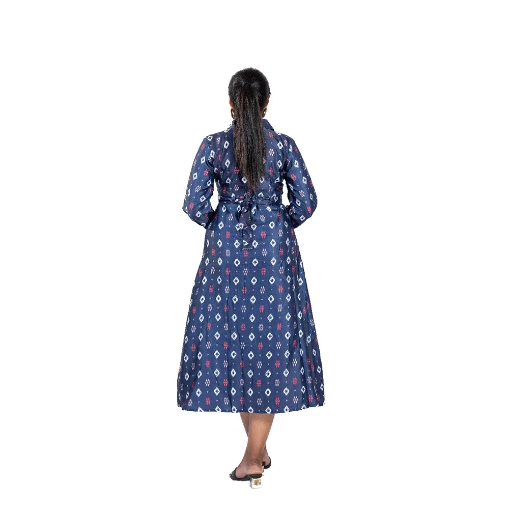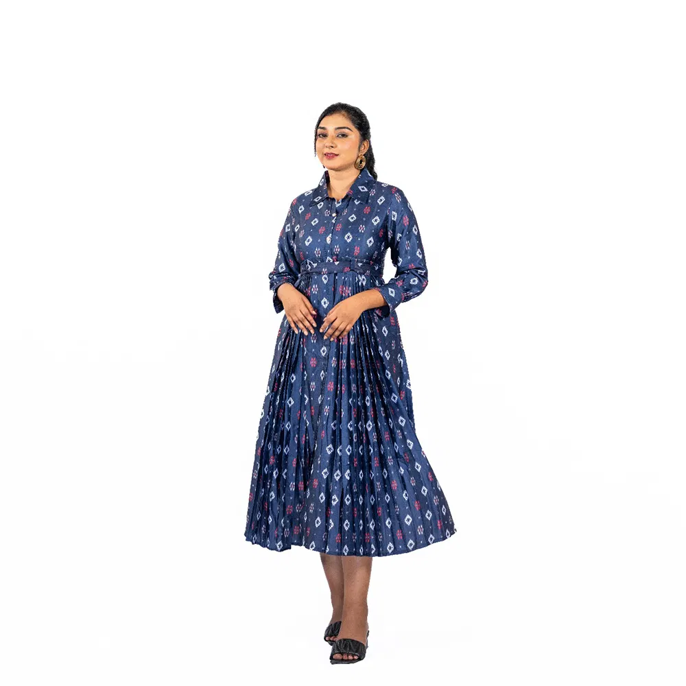 Be the first to review “Ink Blue Linen Formal Dress with Neat Pleats and Belt to Go Along”