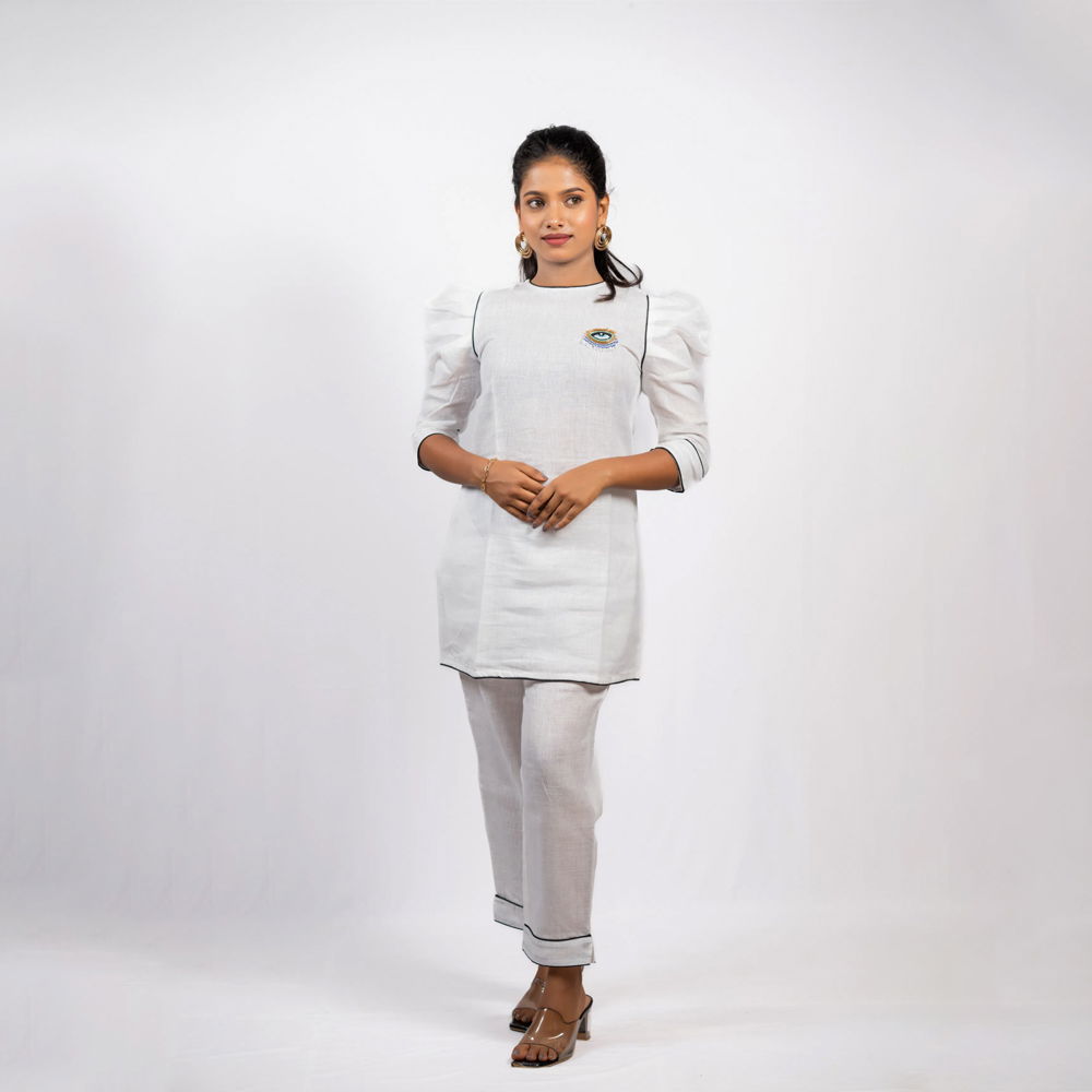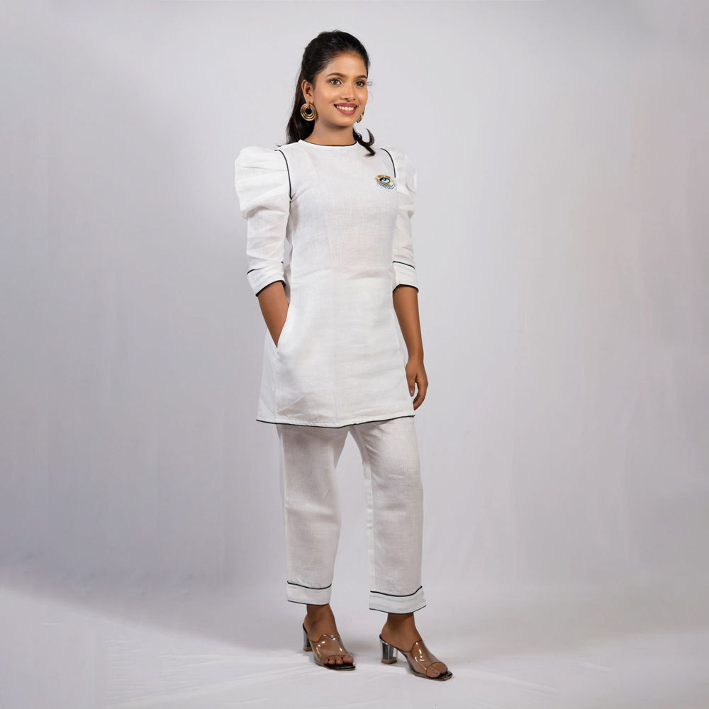 Be the first to review “White Linen Cord Set with Zardozi Evil Eye Patchwork”