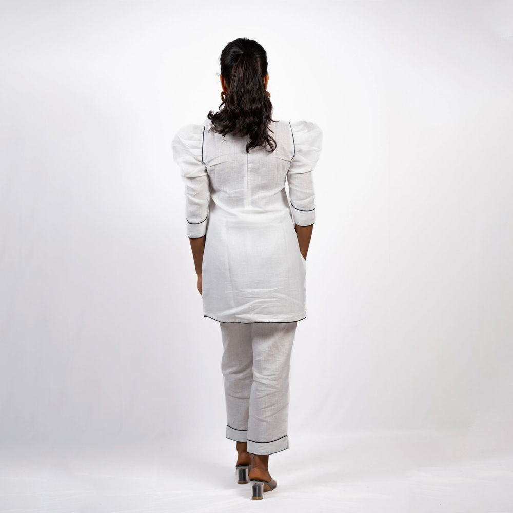 White Linen Cord Set with Zardozi Evil Eye Patchwork